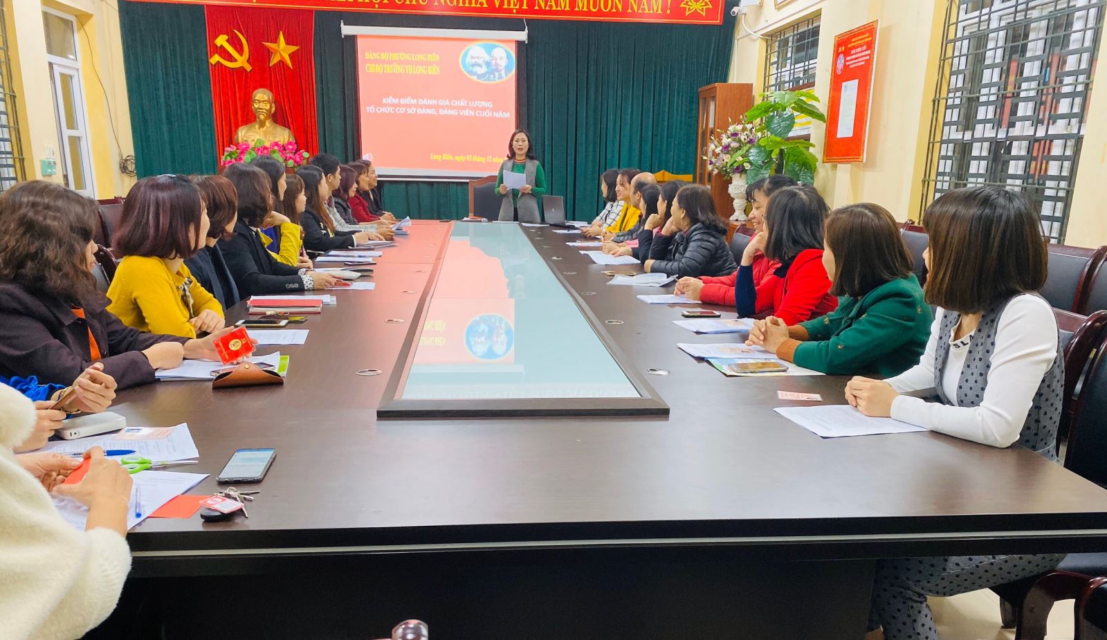 Trong Hội nghị Tổng kết " Kiểm điểm đánh giá chất lượng Tổ chức cơ sở Đảng, Đảng viên cuối năm 2019" ngày 03 - 12 -2019, đồng chí Đồng Thị Quyên - Bí thư chi bộ, Hiệu trưởng nhà trường đã tự hào nhắc tới những thành tích của Chi bộ trong một năm qua. Mỗi bản kiểm điểm cá nhân của các đồng chí Đảng viên là một ghi nhận sự thành công trong công tác Đảng của Chi bộ.