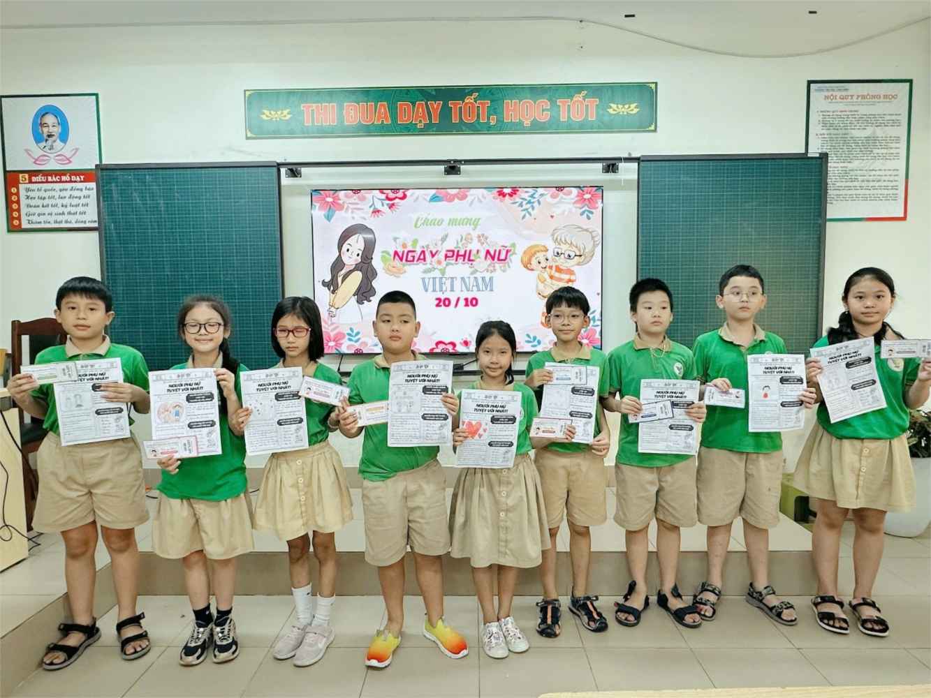 Ngày 20 tháng 10 là ngày Phụ nữ Việt Nam – ngày để tôn vinh những người phụ nữ tuyệt vời trong cuộc sống. Để chào mừng ngày đặc biệt này, cô giáo chủ nhiệm lớp em, cô Hiền, đã tổ chức cho cả lớp 4A3 một buổi hoạt động thật ý nghĩa. Đó là làm thiệp và tập nhảy để tặng quà cho các mẹ.