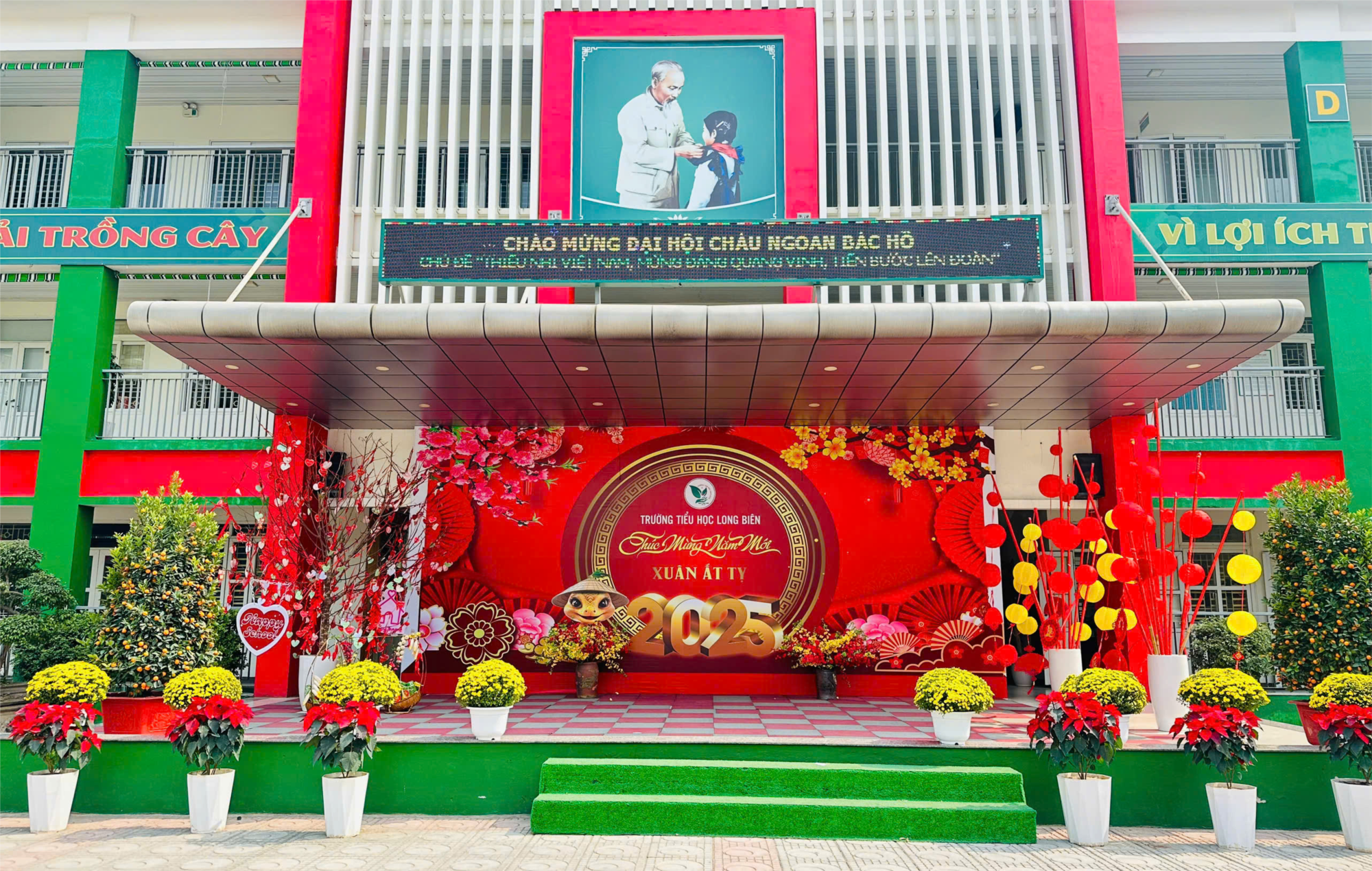 Không khí Tết đã tràn ngập trên từng con đường, làng xóm, tràn về cả ngôi trường thân yêu của em – trường tiểu học Long Biên. Năm nay, trường em trang trí Tết thật rực rỡ với một sắc màu đỏ thắm. Trong quan niệm của người Việt Nam, màu đỏ là màu của sự may mắn, bình an. Màu đỏ tượng trưng cho sự khởi đầu mới, cho những điều tốt đẹp sẽ đến trong năm mới. Màu đỏ cũng rất phù hợp với không khí lễ hội ngày Tết, mang đến sự linh thiêng, sum vầy trong không gian sum họp gia đình. Màu đỏ cũng là màu sắc tượng trưng cho sự thành công, tự tin.