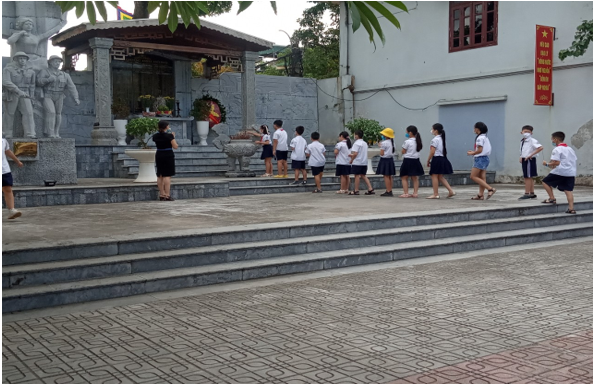 Chú !important;ng em xếp 2 hàng ngay ngắn trước cổng trường để đi viếng Tượng đài