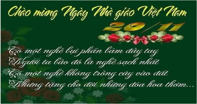 !important; Tình yêu bao la của thầy cô đã dạy dỗ truyền đạt cho chúng con kiến thức sẽ không bao giờ phai nhạt, chỉ là học sinh chúng con chưa từng một lần và cảm nhận tất cả những điều đó. Làm nghề giáo, bận rộn bao nhiêu là việc, bao đêm ròng rã thức trắng soạn bài, những trang giáo án đưa ta đến ước mơ, hay mệt nhòa vì chấm bài thi, bài kiểm tra của chúng ta. Mệt mỏi là thế, nhưng khi ngày mới bắt đầu, các cô vẫn nở nụ cười tươi tắn chào đón, vẫn giảng dạy hăng say tất cả vì thế hệ học sinh thân yêu. “ Dẫu đếm hết sao trời đêm nay, dẫu đến hết lá mùa thu rơi, nhưng ngàn năm, làm sao em đến hết công ơn người Thầy!”. Tình yêu đó, lòng tri ân đó có cả trong lời bài hát. Và tấm lòng quý giá đó chẳng cần đâu sự trả ơn của các con, chỉ cần nỗ lực học tập chăm chỉ hơn lấy kết quả học tập bù đắp cho công ơn Thầy Cô, cho những gì mà Thầy Cô đã giành trọn vẹn nửa đời người cho sự nghiệp trồng Người. Chúng con hãy dâng tặng những hoa điểm 10, là những học trò ngoan - món quà quý giá nhất mà các Thầy Cô mong muốn. Bởi chỉ có tình cảm chân thành xuất phát từ trái tim thì mới đến được trái tim mà các Cô cũng đã giành cho thế hệ học sinh thân yêu!