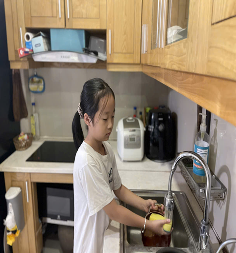 Biết được hoàn cảnh của em không được mẹ ở cạnh chăm sóc, đưa đón hai chị em đi học, tôi càng thương con hơn. Có lẽ thiếu vắng bàn tay chăm sóc của mẹ nên mới chỉ là học sinh lớp Năm nhưng An Nhiên đã rất tự lập. Hàng ngày, đi học về con làm mọi việc từ rửa bát, quét nhà, phơi quần áo đến nấu những món ăn đơn giản. Trong lớp, An Nhiên là một cô bé rất hòa đồng, giàu lòng vị tha, sẵn sàng giúp đỡ bạn. Mỗi giờ học, con luôn tích cực, hăng hái phát biểu, xây dựng bài.