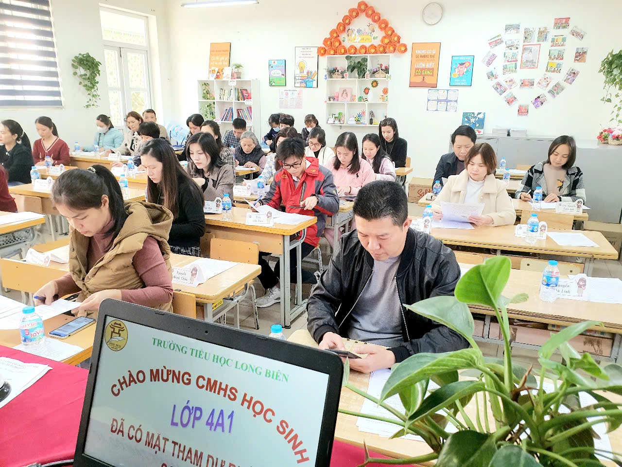 Hội nghị CMHS cuối học kì I của trường TH Long Biên gồm hai phần. Phần thứ nhất, Ban giám hiệu họp với Đại diện CMHS các lớp tại phòng HĐSP nhà trường. Phần tiếp theo, giáo viên chủ nhiệm các lớp họp với các bậc cha mẹ tại lớp học.