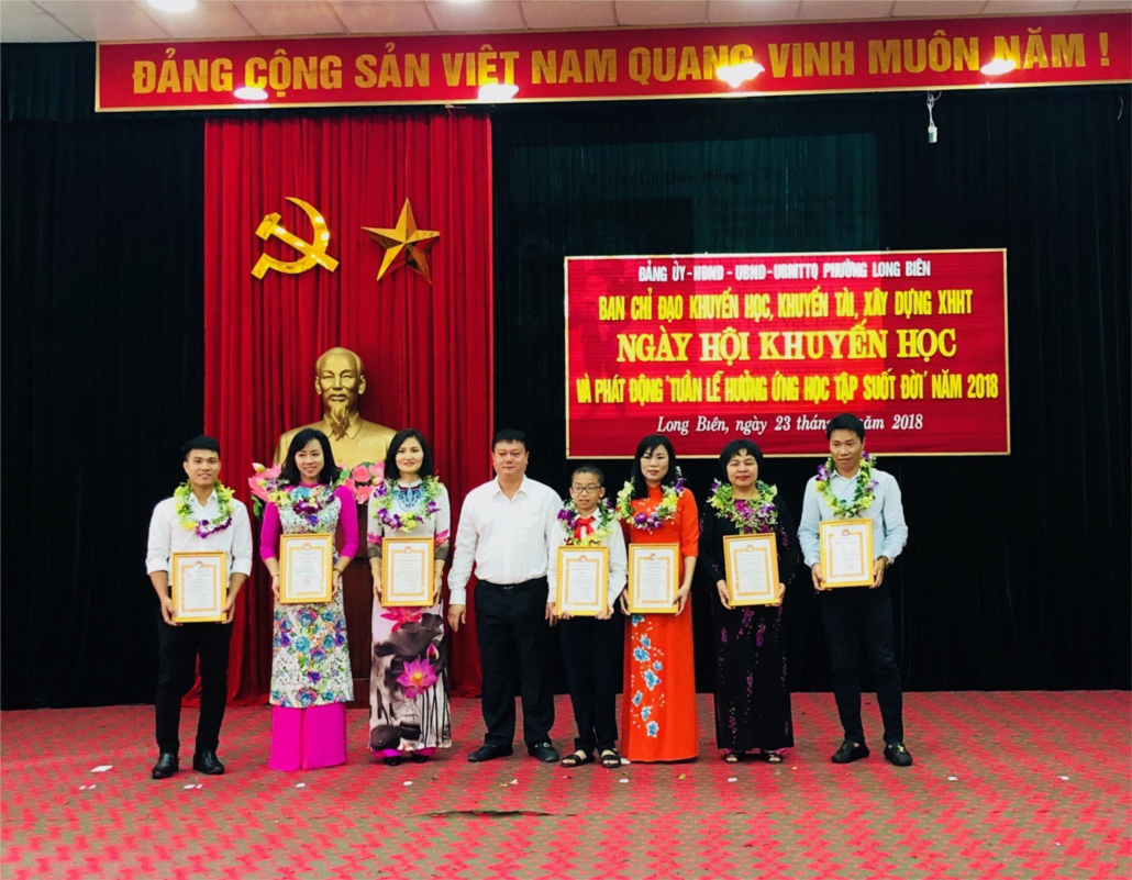 Thật vui mừng và tự hào cho biết bao cả thầy và trò trường Tiểu học Long Biên khi được vinh danh là những cá nhân tiêu biểu nhân dịp kỉ niệm 15 năm thành lập Quận trong Ngày hội Khuyến học của Phường Long Biên. Đó không chỉ thể hiện sự quan tâm sâu sắc tới nhà trường, tới các thầy cô, các con cũng như tới sự nghiệp giáo dục địa phương mà cũng là món quà động viên tinh thần rất lớn để các thầy các cô thêm say mê với nghề, các con học sinh ngày càng cố gắng hơn trong học tập, góp phần xây dựng quê hương Long Biên ngày càng giàu đẹp.