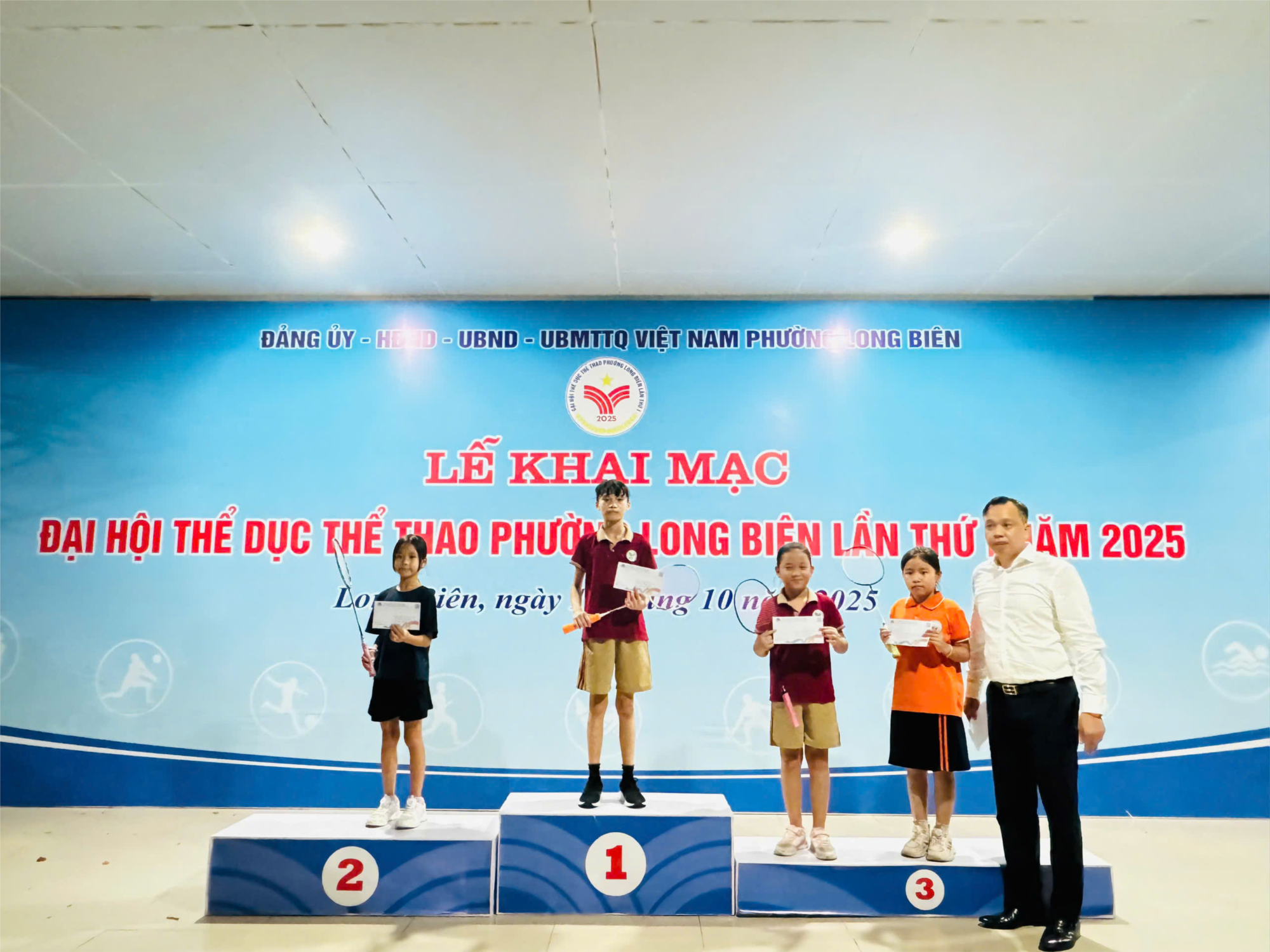 Đại hội Thể dục Thể thao phường Long Biên lần thứ I tổ chức vào ngày 18/10/2025, đại diện Đoàn Thể thao của Trường Tiểu học Long Biên gồm 24 vận động viên( 4 giáo viên và 22 học sinh) đã tham gia thi đấu với tinh thần quyết tâm cao và đạt được nhiều thành tích xuất sắc, góp phần mang vinh quang về cho nhà trường tiêu biểu: