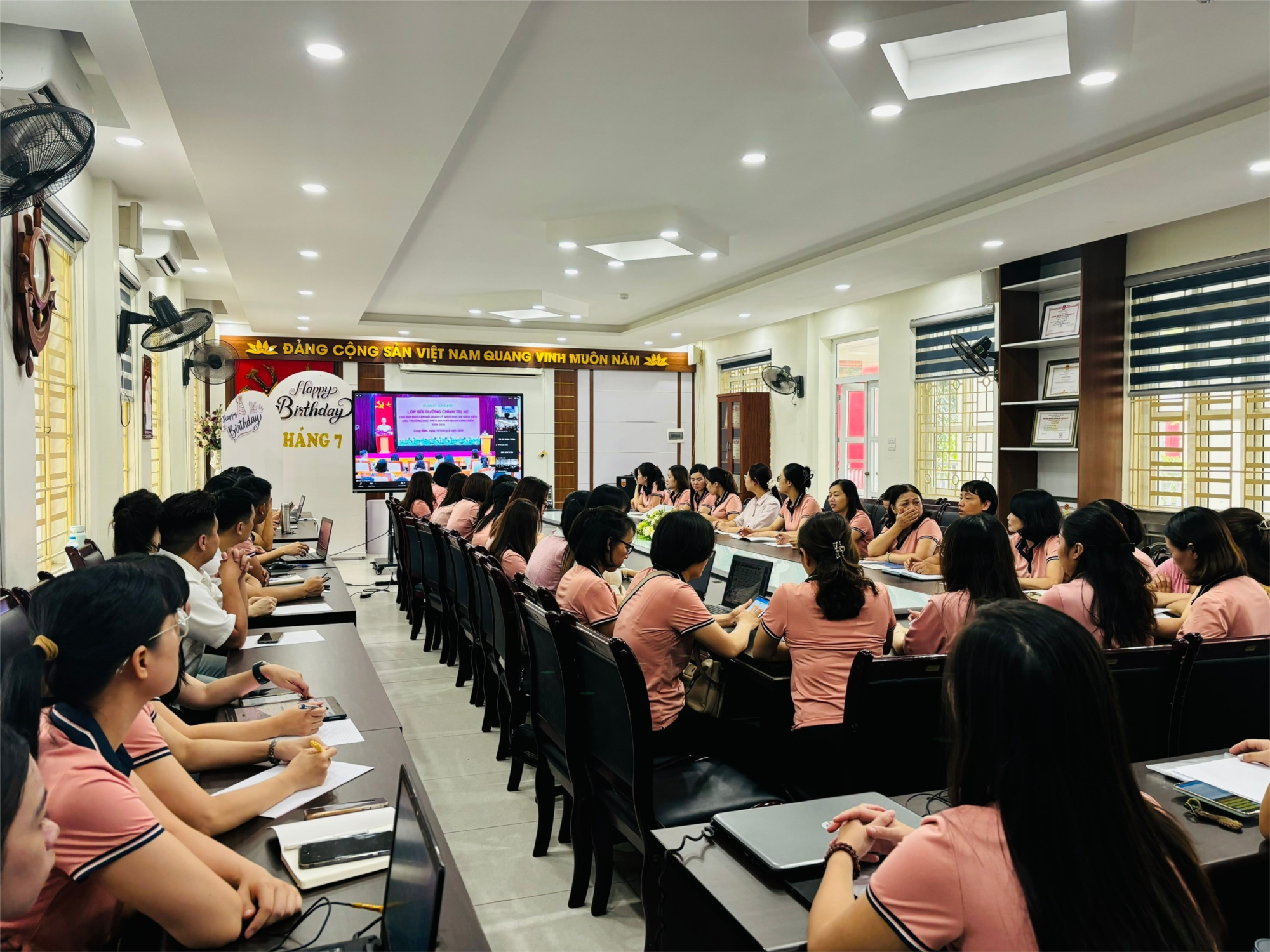 Tham dự buổi học gồm các đồng chí lãnh đạo, chuyên viên phòng Giáo dục & Đào tạo quận cùng toàn thể cán bộ quản lý, giáo viên các trường học trên địa bàn quận Long Biên bằng hình thức trực tiếp tại Hội trường Quận uỷ và trực tuyến qua phần mềm Zoom tại các điểm cầu nhà trường.