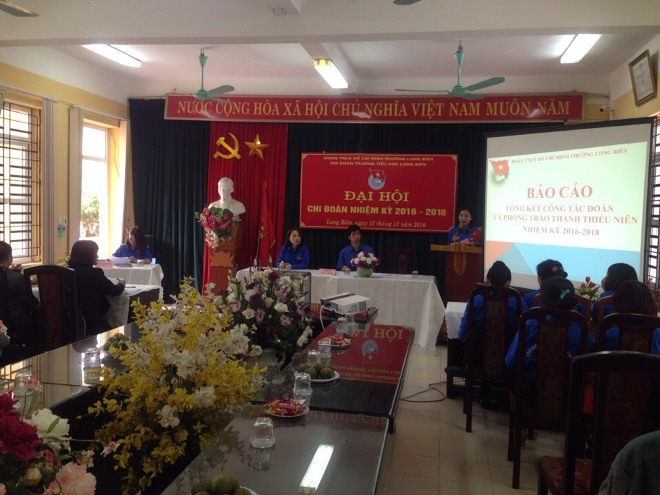 Thực hiện kế hoạch số: 60/KH – ĐTN ngày 31 tháng 10 năm 2016 của Ban chấp hành Đoàn phường Long Biên về việc tổ chức Đại hội chi đoàn nhiệm kỳ 2017- 2022, được sự đồng ý của Chi bộ Trường TH Long Biên Sáng ngày 12/11/2016, Đại hội Chi đoàn trường Tiểu học Long Biên đã diễn ra trong không khí trang nghiêm nhưng vô cùng vui tươi phấn khởi. Tới dự Đại hội có Đ/c Trần Thị Hiền Bí thư Đoàn phường, Đ/c Đồng Thị Quyên – Bí thư chi bộ và đặc biệt là sự có mặt của bí thư chi đoàn các đơn vị y tế, công an, trường học, đại diện các tổ trên địa phường Long Biên và 22 đoàn viên chi đoàn. Đại hội nhiệm kỳ 2016 - 2018 với mục đích tổng kết hoạt động của Chi đoàn trong nhiệm kỳ 2014 - 2016 đề ra phương hướng hoạt động nhiệm kỳ 2016 – 2018, bầu BCH Chi đoàn nhiệm kỳ mới để lãnh đạo chi đoàn thực hiện các nhiệm vụ của Đoàn cấp trên và nhiệm vụ chính trị tại địa phương, bầu đại biểu đi dự đại hội đại biểu Đoàn TNCS Hồ Chí Minh phường Long Biên.