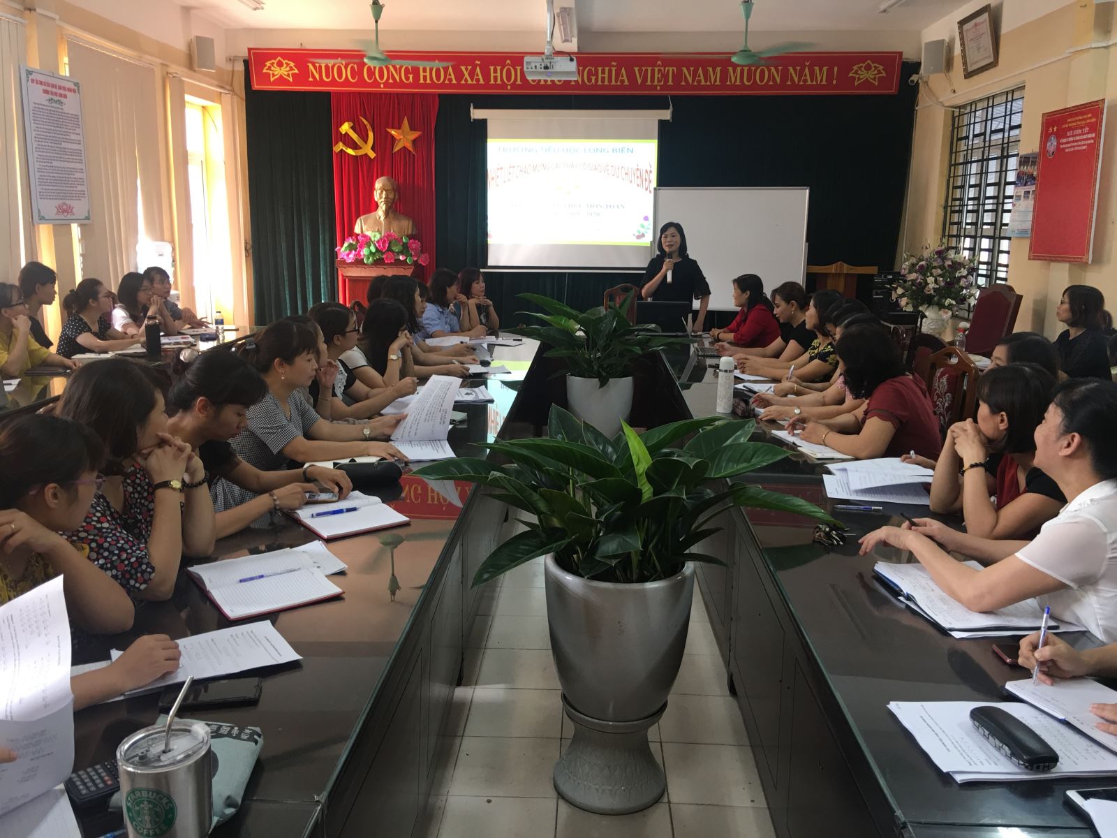 Thực hiện Kế hoạch năm học, nhiệm vụ chuyên môn hè năm 2019-2020, Ban giám hiệu nhà trường đã phân công các đồng chí giáo cốt cán lên các chuyên đề mang tính thiết thực, bổ ích cho các giáo viên nhà trường. Các tiết chuyên đề mang tính “Cây nhà lá vườn”, tự biên, tự diễn, tự trao đổi các kiến thức cơ bản của các môn học: Tiếng Việt, Toán mang tính hệ thống, cơ bản và nâng cao trên cơ sở tích lũy kinh nghiệm, tự học, tự bồi dưỡng kiến thức của mình.