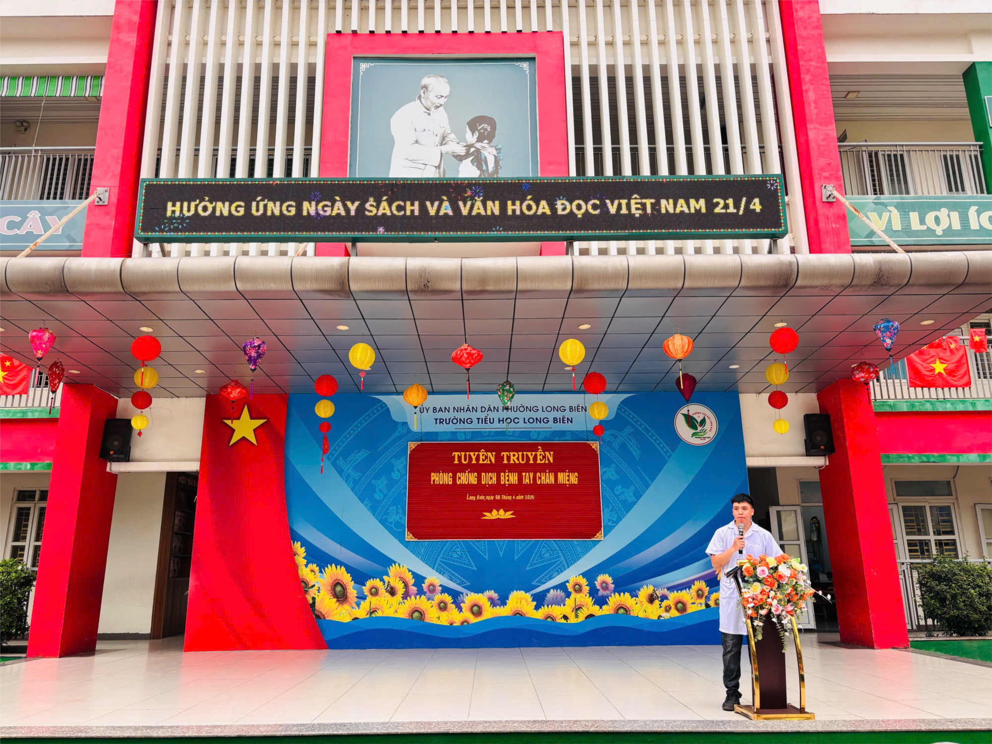 Sáng thứ Hai, ngày 06/4, Trường Tiểu học Long Biên đã tổ chức buổi tuyên truyền phòng, chống bệnh tay chân miệng cho toàn thể cán bộ, giáo viên và học sinh trong toàn trường.
