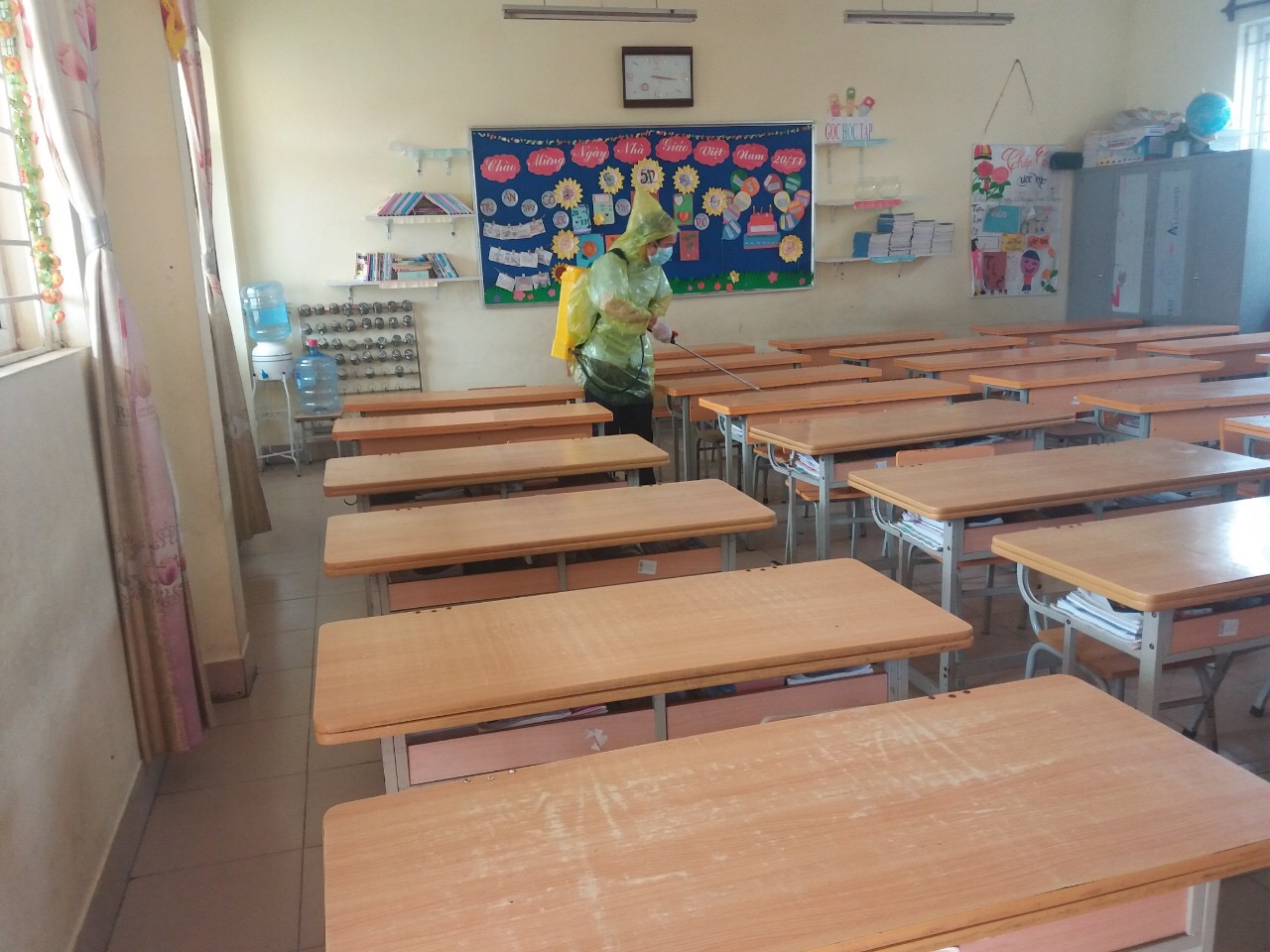 Và trước khi HS trở lại trường, lớp 5A2 đã được phun thuốc diệt khuẩn nhiều lần.