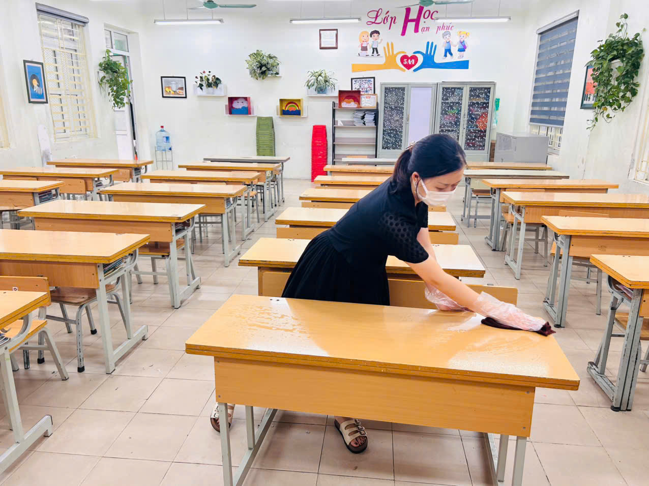 Thực hiện kế hoạch số 677/KH-KSBT của Trung tâm Kiểm soát Bệnh tật – Sở Y tế Hà Nội về việc “ Vệ sinh môi trường, khử khuẩn chủ động phòng, chống bệnh chân tay miệng” trên địa bàn Hà Nội. Trường Tiểu học Long Biên đã tích cực triển khai nhiều biện pháp phòng chống dịch bệnh, trong đó đặc biệt chú trọng công tác vệ sinh, sát khuẩn lớp học nhằm bảo vệ sức khỏe cho học sinh.