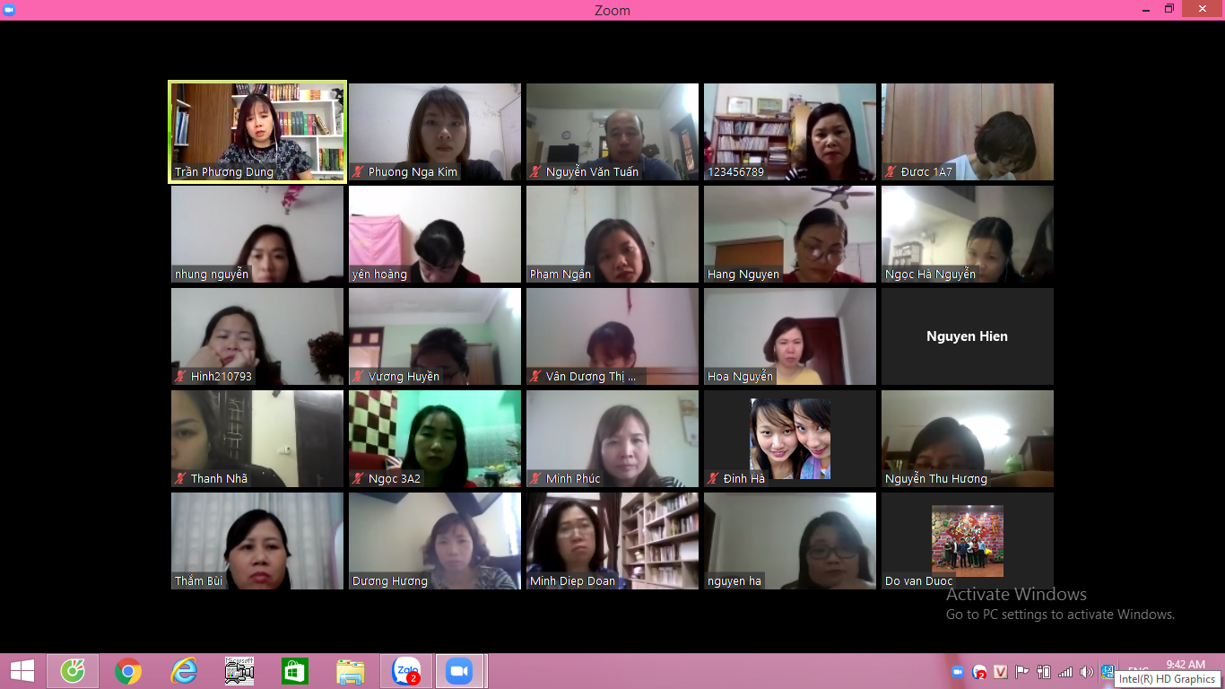 Sáng ngày 29 tháng 3 có 32 đồng chí giáo viên chủ nhiệm và hai đồng chí giáo viên Tiếng Anh cùng Ban giám hiệu trường Tiểu học Long Biên đã tham gia cuộc họp trực tuyến thống nhất cách dạy trực tuyến cho học sinh trong thời gian nghỉ dịch Covid - 19.