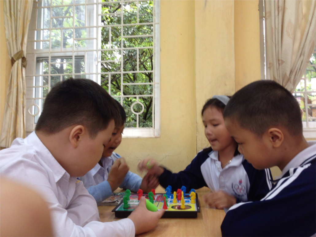 Bên trong lớp các bạn nam lại lựa chọn giờ giải lao bằng cách chơi cá ngựa, cờ