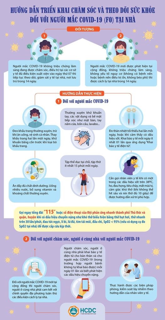 Trước tình hình diễn biến phức tạp của dịch bệnh Covid-19 đang quay trở lại thủ đô Hà Nội trong những ngày gần đây, mỗi người dân đều phải nâng cao tinh thần phòng chống dịch. Nếu trong gia đình bạn có người mắc Covid-19 thì chúng ta cần phải làm gì ? Tổ chức Y tế Thế giới (WHO) tại Việt Nam đưa ra hướng dẫn theo dõi bệnh nhân COVID-19 tại nhà, trong đó có hướng dẫn đối với cộng đồng, người nhà và bản thân người bệnh.