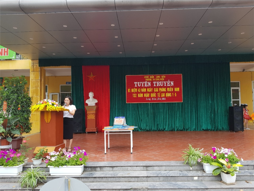 Sáng thứ 2 ngày 23 tháng 4 năm 2017 Trường tiểu học Long Biên - quận Long Biên long trọng tổ chức Lễ kỷ niệm 43 năm Ngày giải phóng miền Nam thống nhất đất nước và 132 năm ngày quốc tế lao động 1/5 thông qua rất nhiều các hoạt động tuyên truyền giáo dục đạo đức học sinh như: