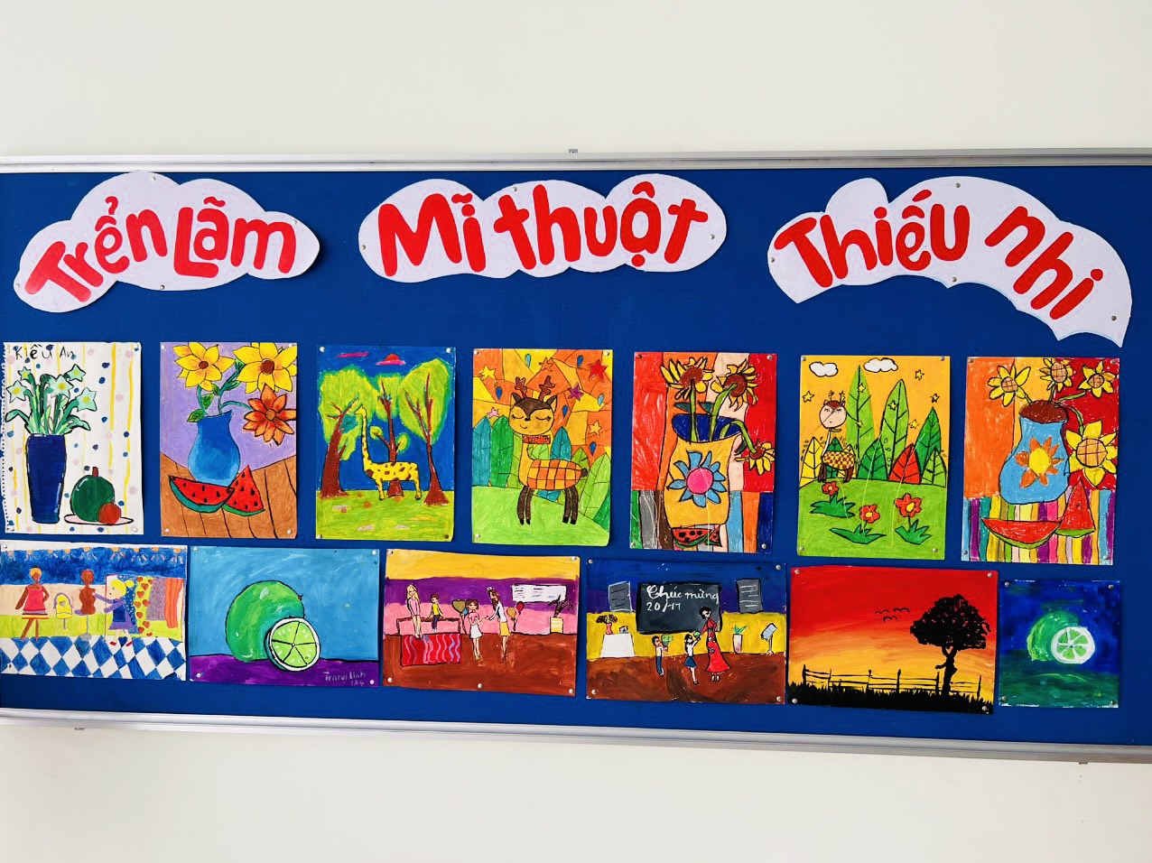 !important; Mỗi học sinh đến trường đều có những góc nhỏ yêu thích của mình. Có bạn thích căn phòng học quen thuộc, có bạn thích hàng ghế sân trường, có bạn thích phòng Thư viện ngập tràn sách, lại có bạn thích phòng Tin học hiện đại. Trong số đó, không ít bạn yêu thích góc TRIỂN LÃM MỸ THUẬT. Tại đây, rất nhiều tác phẩm của các bạn họa sĩ nhí được trưng bày với vô vàn màu sắc rực rỡ, hình khối bắt mắt. Nhìn thấy tác phẩm của mình được trưng bày và nhận được sự thán phục của bạn bè, các tác giả nhí rất vui mừng và hãnh diện. Có lẽ chính vì vậy, câu lạc bộ Mỹ thuật luôn thu hút đông đảo các bạn nhỏ tham gia.