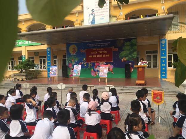 Thực hiện sự chỉ đạo của Ban giám hiệu, sáng thứ hai ngày 16 tháng 9 năm 2019, bộ phận y tế trường Tiểu học Long Biên tổ chức tuyên truyền, giáo dục các em học sinh và nâng cao sự hiểu biết cho giáo viên, nhân viên nhà trường cách phòng chống bệnh sốt xuất huyết.